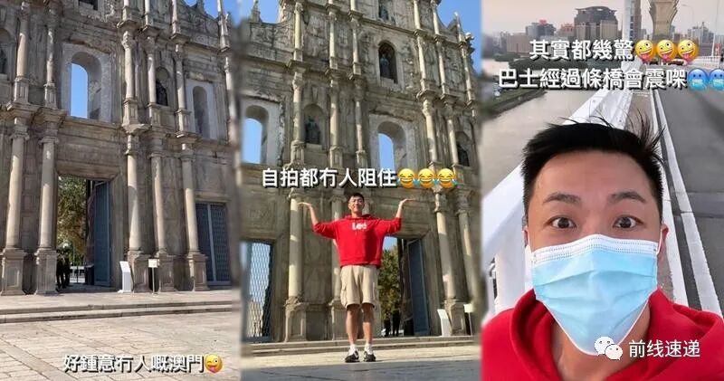 刘浩龙在澳凼大桥打卡,疑似嘲讽澳门桥梁质量,竟然写道:“其实都几惊,巴士经过条桥会震架!”。之后刘浩龙到大三巴牌坊拍照留念,又写上:“自拍都冇人阻住”及“好锺意冇人嘅澳门”。