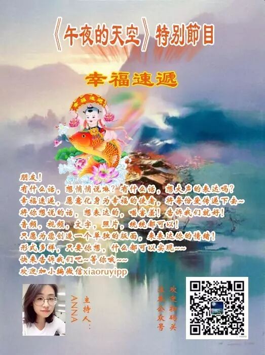 朋友,您好,欢迎您收听,午夜的天空特别节目,幸福速递,我是主播,ANNA。今天收到一位妈妈的来信,原来是小帅哥要过生日啦!