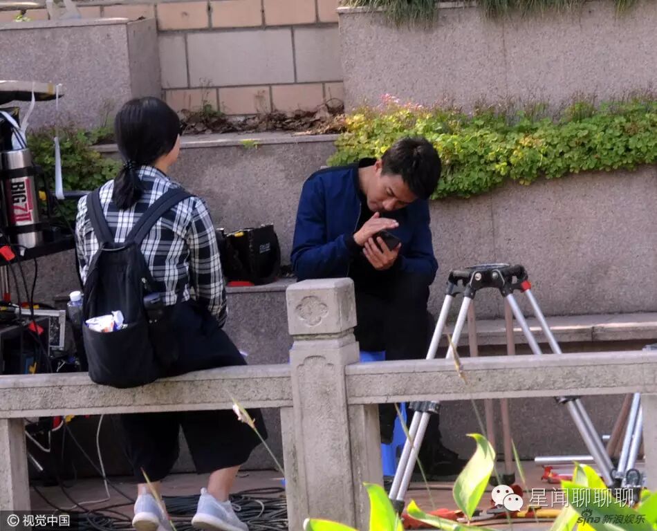 近日,刘恺威来到闹市区拍摄新戏,懒理离婚传闻的刘恺威看上去心情相当不错,原地坐在石凳上紧盯手机不时展现笑容。