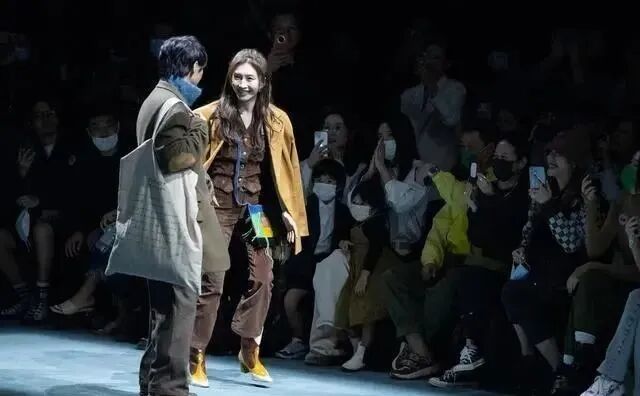 在完全没有准备的情况下,江疏影被韩火火拉上台走秀,真的是一点都没有怯场,完全是自信从容的模样。面带微笑,气场十足。穿着棕色大衣,格外的拉风。这种搭肩的穿法,也是一种比较流行的风格,想要在秋冬季节提升气场的话,我们都可以选择这种搭配方式。