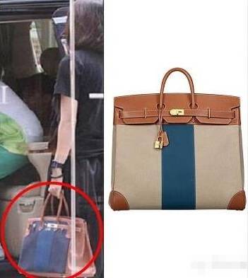 这款Flag皮革拼帆布birkin,有两次街拍都被拍到了。