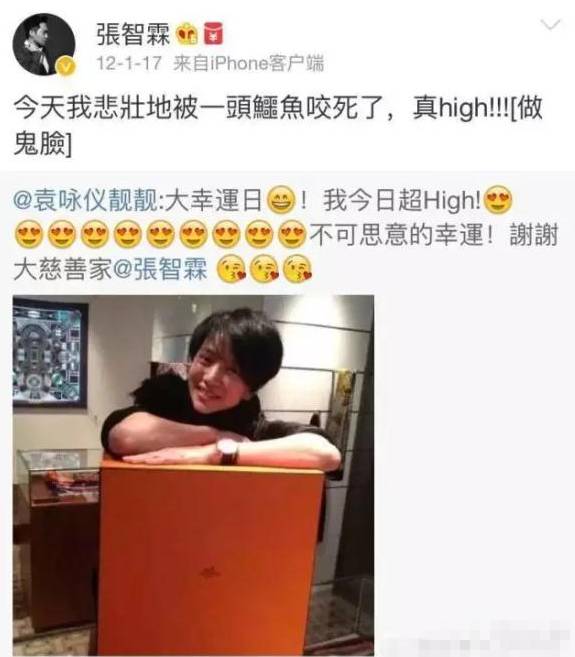 比如之前张智霖没有拿到视帝,就送了袁咏仪爱马仕的手镯……