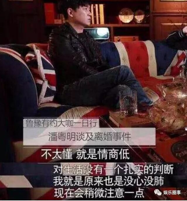 潘粤明后来在一次访问中谈及自己离婚的事情,他承认自己在婚姻中情商太低,而且对生活没有一个判断,过得没心没肺的,但现在回稍微注意一些。说明在这场婚姻里,潘粤明是有意识去总结为何失败的。