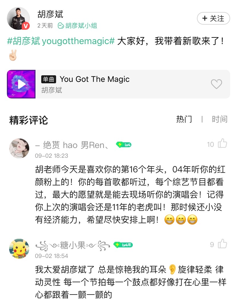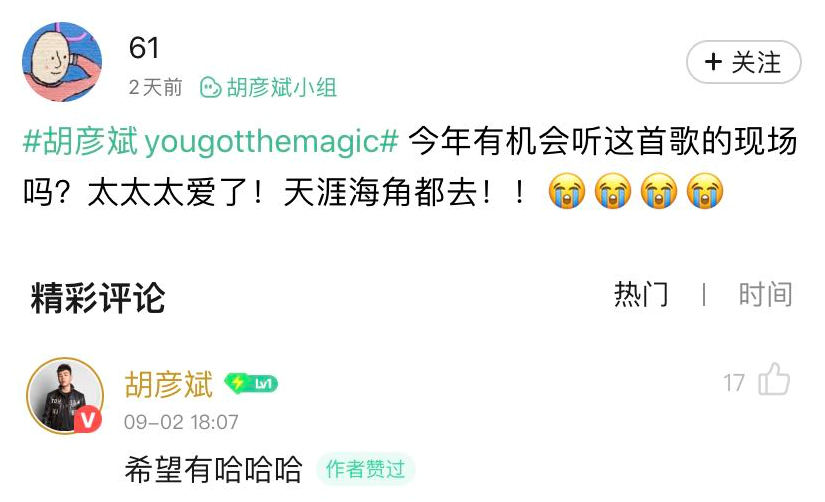 QQ音乐扑通社区,大牌艺人在线翻牌。如果你想与艺人直接对话,并获得艺人一对一的亲密解答,就在扑通社区留言给他们吧!上周,魔动闪霸、胡彦斌、张含韵、王勉、李紫婷、张钰等纷纷空降QQ音乐扑通社区,他们与粉丝亲密互动的独家回放尽在本期“扑通星动”大牌空降精彩回顾。