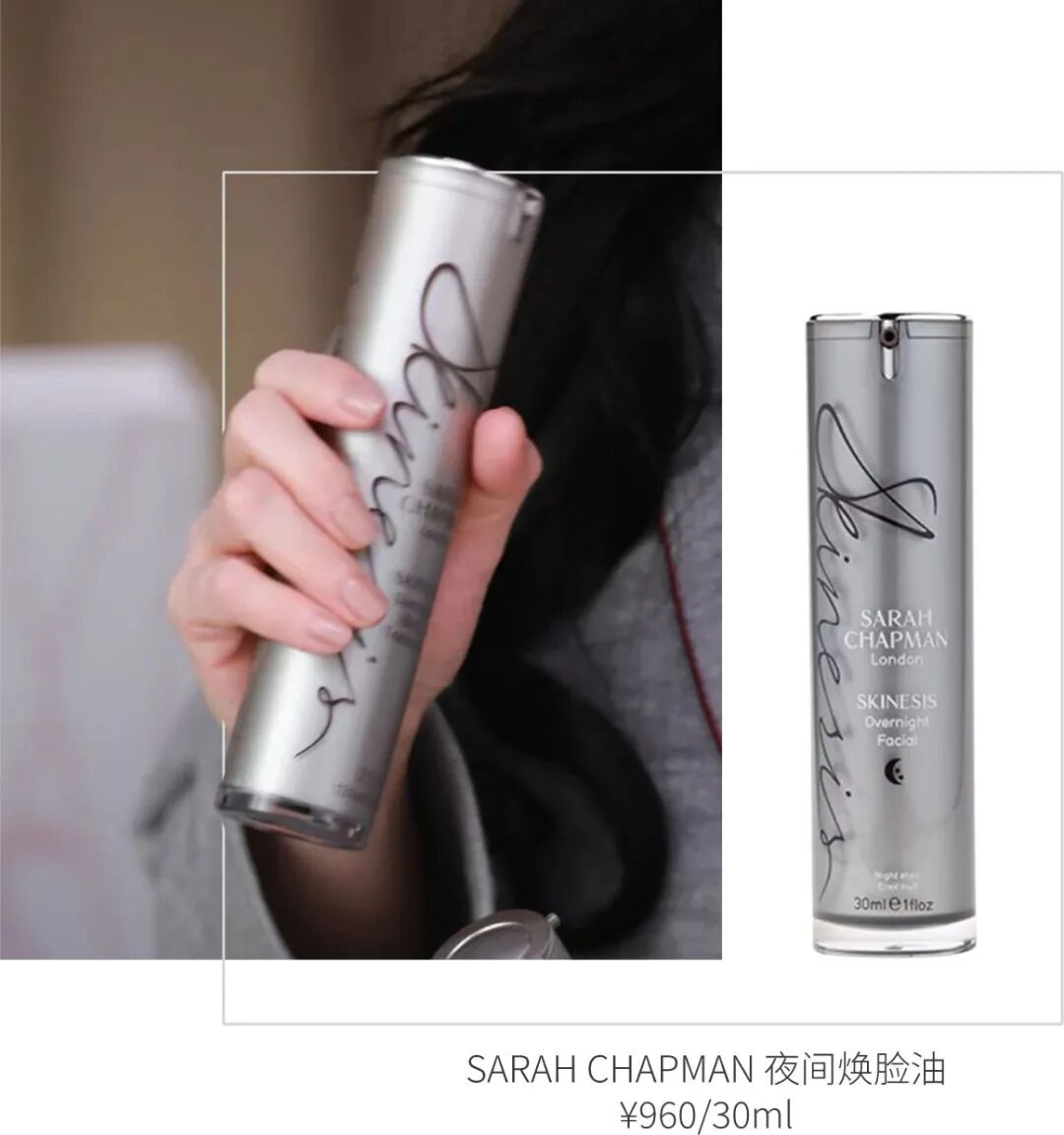 章小蕙很爱用的A醇是一款精华油,来自SARAH CHAPMAN。SARAH CHAPMAN是贝嫂也爱用的品牌,水油一体的质地很好吸收,就算熬夜松垮后用,脸也能瞬间嘭弹变亮。