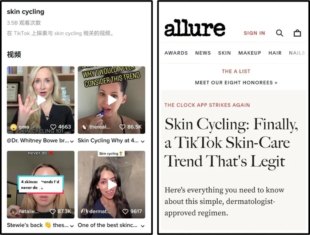 这个护肤模式,在Tik Tok上正在流行,并且在很多国外的美容网站也成为了一种主流趋势,引起了一些专业、知名的皮肤科医生关注和肯定。