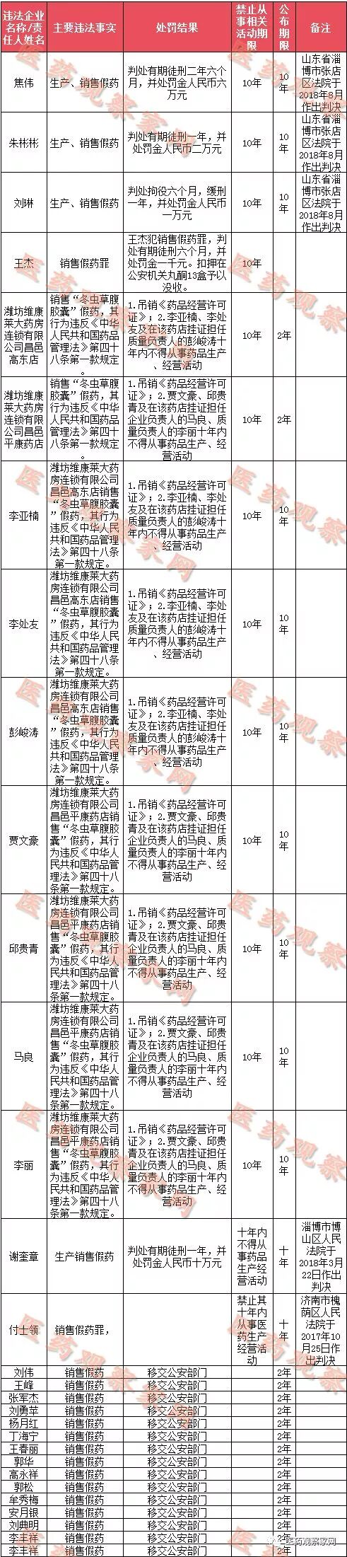 值得注意的是,这30个违法企业/责任人的违法事实均是生产/销售假药,其中13人十年内禁止从事医药生产经营相关活动。