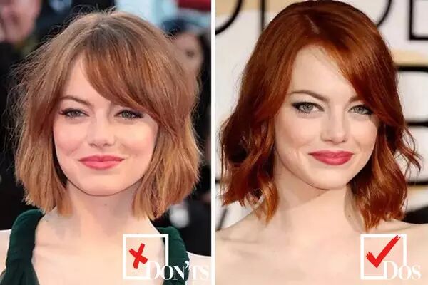 方脸的小仙女,同理也不太适合耳上波波,凯拉早前就剪过。但吃过亏的她,聪明的将发尾延长到盖住耳朵的长度,再用卷棒为头发营造出似有若无的卷度,分分钟修饰原先略带棱角的脸型。