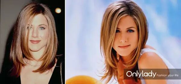 代表就是Jennifer Aniston了,她的Rachel Green头型一方面深入人心,另一方面也很好的规避了她的宽大的下颌骨。