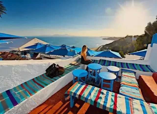 在突尼斯,邂逅最浪漫的蓝白小镇,静静坐在海边,看落日余晖。