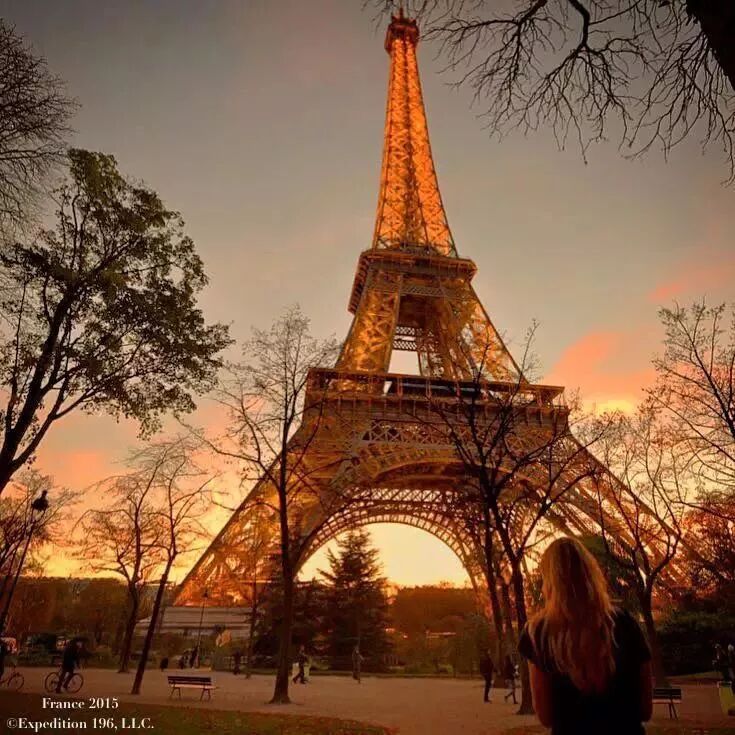 在巴黎,埃菲尔铁塔之下,等一场晚霞,把天空染红。