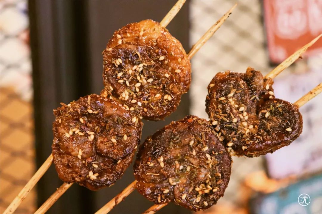 鸡腰整个烤制,小巧入味儿,外表看起来像个腰果,口感鲜嫩绵软,多撸几串儿也不占地儿。