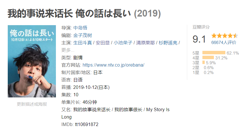 最近因为疫情,很多人不得不成为“家里蹲”吧,今天部屋君就给大家安利一部关于家里蹲的日剧《我 的 事 说 来 话 长》,很轻松治愈的一部作品。(文章末尾有写获取zi源的方式)