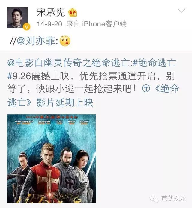 宋承宪的微博内容更是明显得不能再明显,十条微博,五条给了《第3种爱情》,剩下五条给了刘亦菲