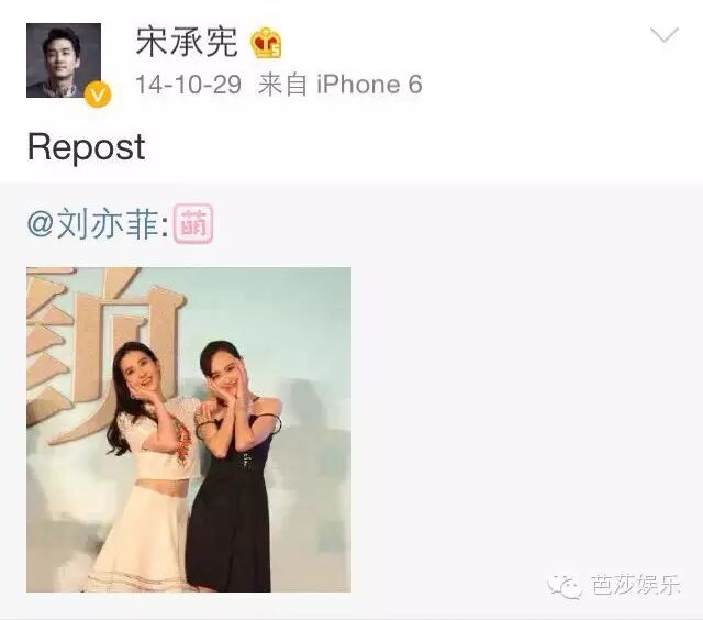 还给刘亦菲的电影打广告,自己的电影都没见你宣传过几次!最后,连宋承宪的粉丝自己都说:欧巴,为什么你的微博全是刘亦菲!