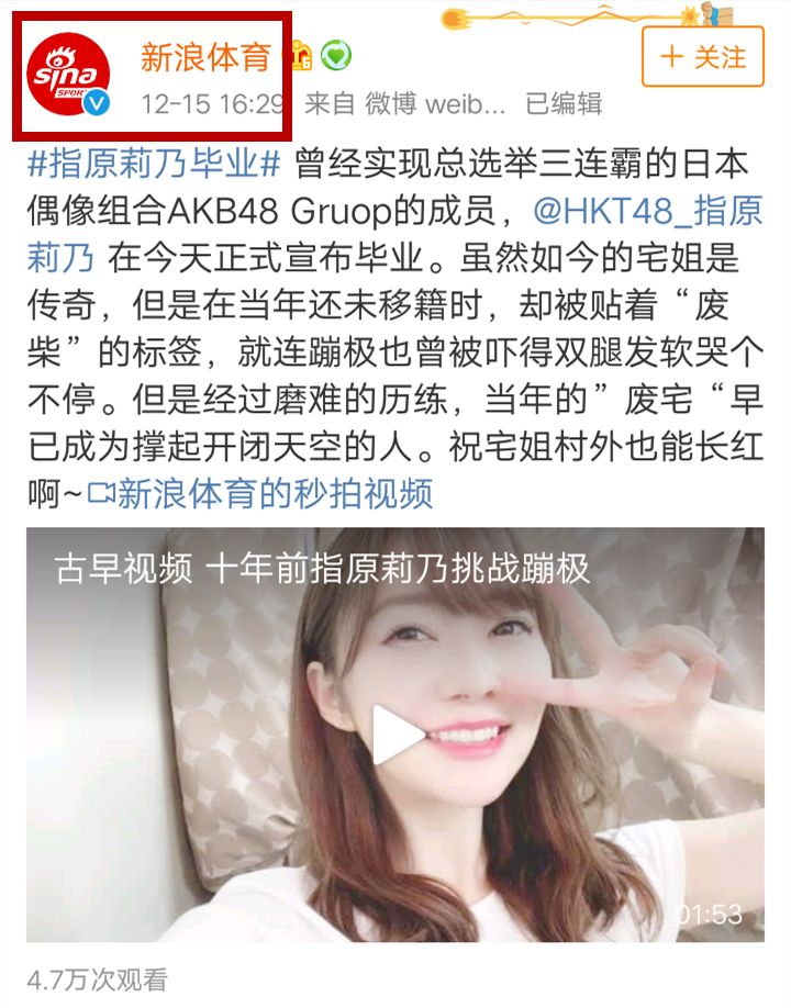 她宣布毕业的消息也是迅速成为了日本各大新闻网站的头条和日本社交网络上的热门话题,在中国的微博上也是上了热搜榜,甚至连“新浪体育”都发了纪念她毕业的内容