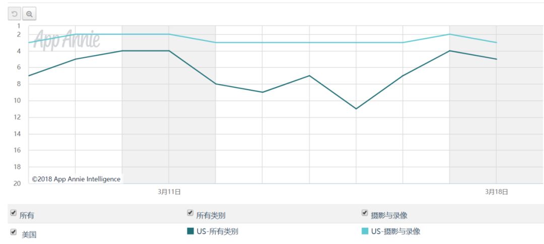 △Snapchat在苹果App Store中3月8日至18日的下载量排名,数据来自App Annie