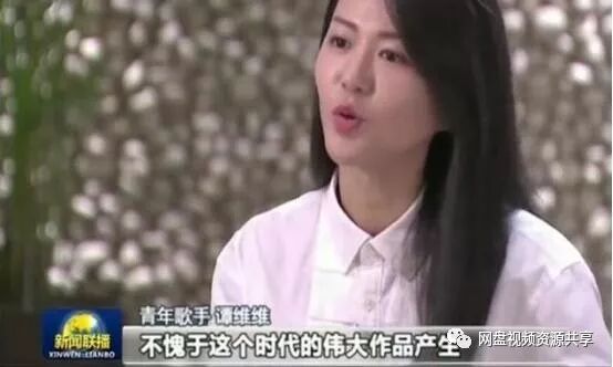 谭维维着衣朴素,素颜出境央视《新闻联播》。被采访了大概三分钟,谈论我们中国文化的传承。
