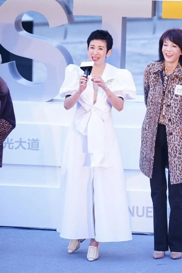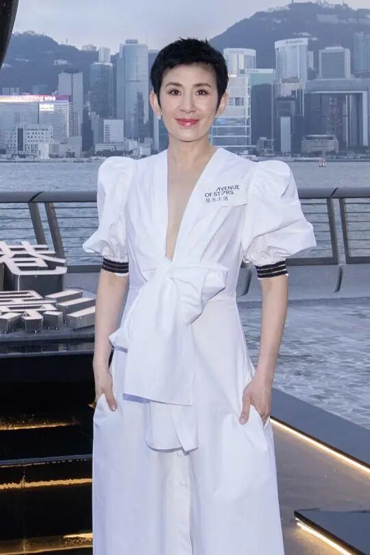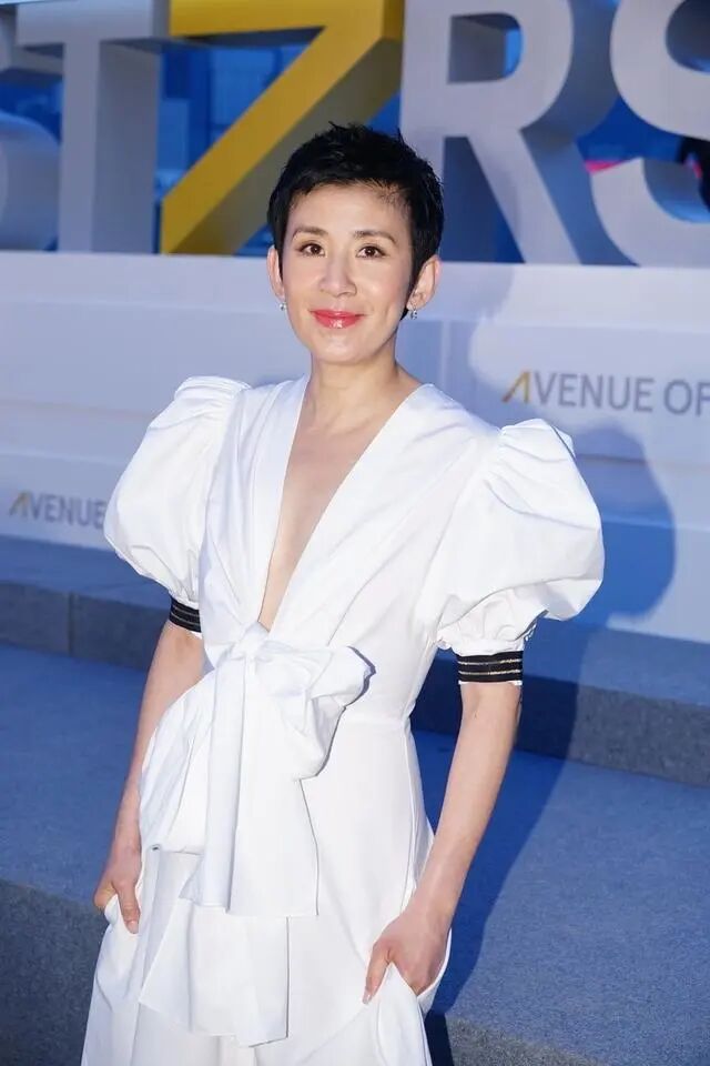 港女在香港影视剧里给我们留下的印象就是职业感很强的精英女性,吴君如身上的白色礼服裙选用的是类似于衬衫的面料,给这样的一件礼服裙也添了些精英感,强硬中又不失温柔,保持自己身上的女人味的同时,也有足够的自信和独立感,这样的女性气质才是我们这个时代追求的女性美。