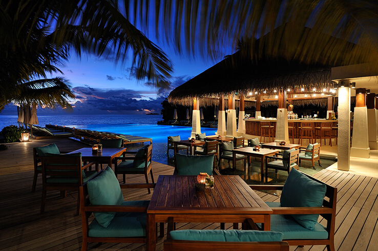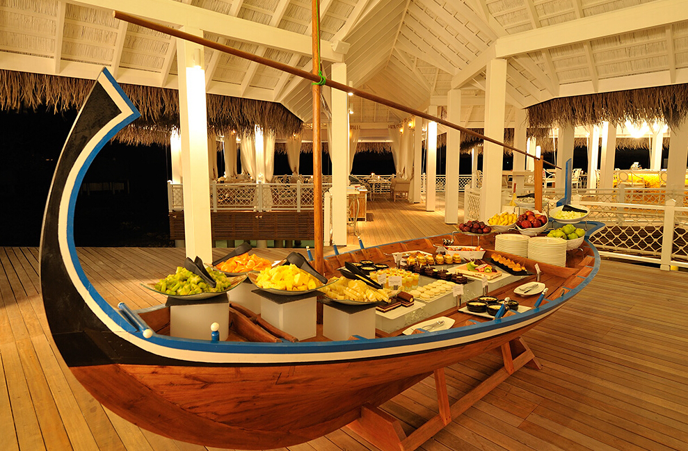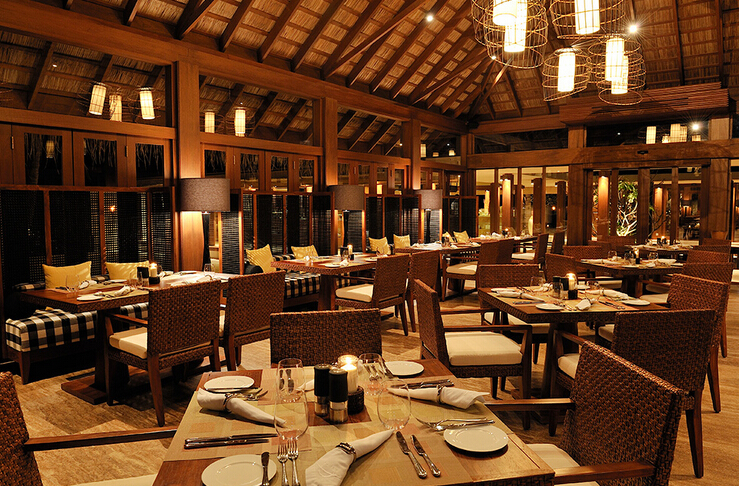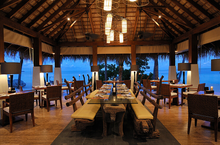 主餐厅位于小岛东面,面临印度洋,供应特色早晚餐和国际水平的豪华自助餐,菜式经过精心设计,口味多元化,迎合宾客的不同需要。
