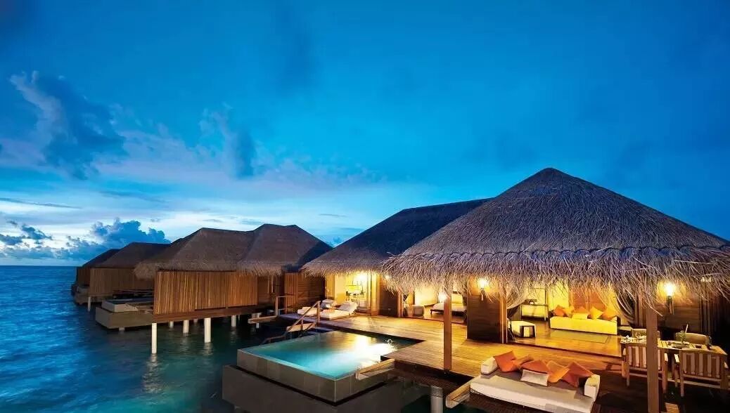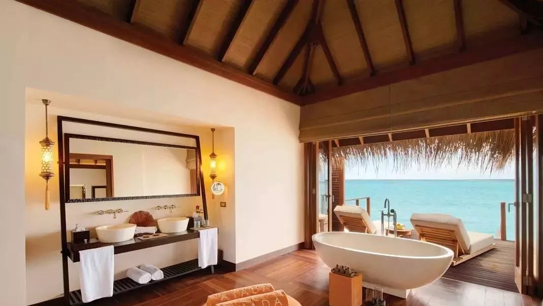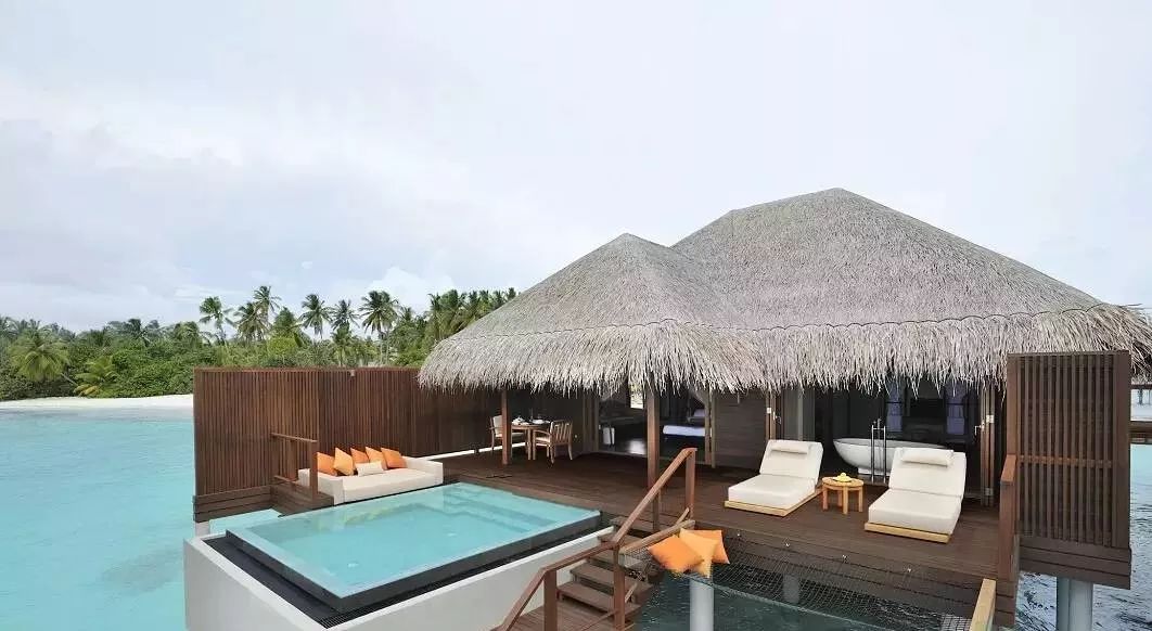 建在泻湖上的水上别墅环境清幽,宾客可以躺在吊床静听海浪拍岸,尽情舒展身心,别墅空间宽敞,设有私人户外阳台,水上吊床,泳池和直达泻湖的通道,饱览一望无际的海景。