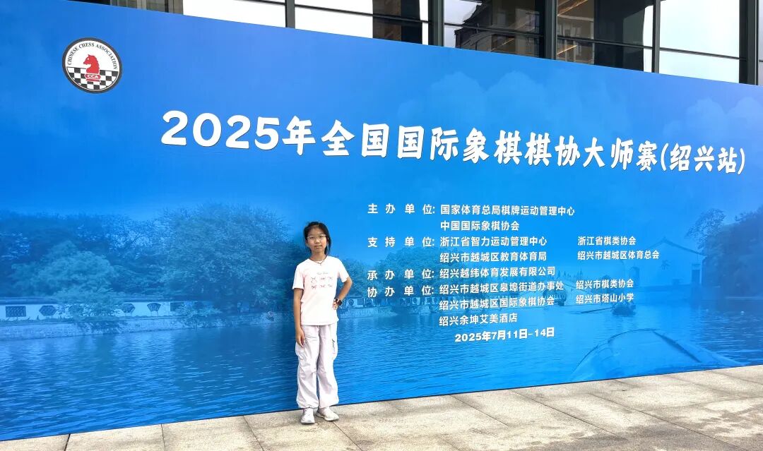 2025年第一场全国国际象棋大师赛于7月12-14日在浙江绍兴举行,常德市微澜国际象棋俱乐部有涂展硕、余涵玉、谢雨欣3人抢到参赛名额,经过九轮比赛,3人全部晋级。嘱咐他们写一点比赛总结和感悟,谢雨欣第一个完成,以《成长》为题,写下此文,与所有热爱下棋的朋友们分享: