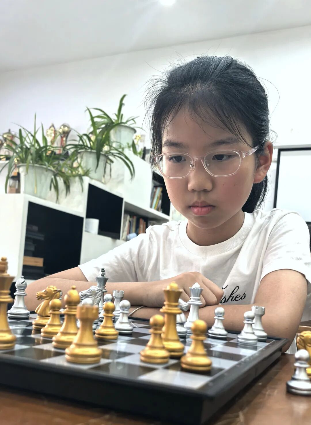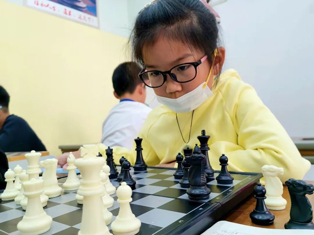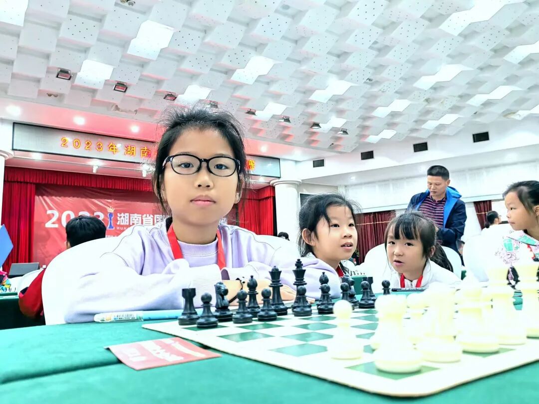 第一次见到谢雨欣,是在武陵区第一小学的校队训练室,2022年,武陵一小国际象棋校队创建初始,从一、二年级推选出的200个孩子里选拔出40人,进入预备队,谢雨欣就是二年级中的一个。