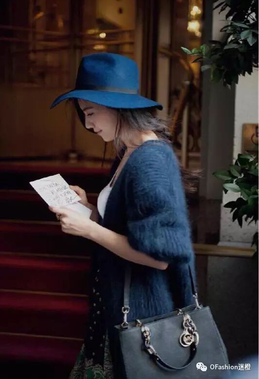 ▲灰色的MM软呢帽与千鸟纹的呢子大衣非常相衬,让周迅看起来充满了法式chic气息。