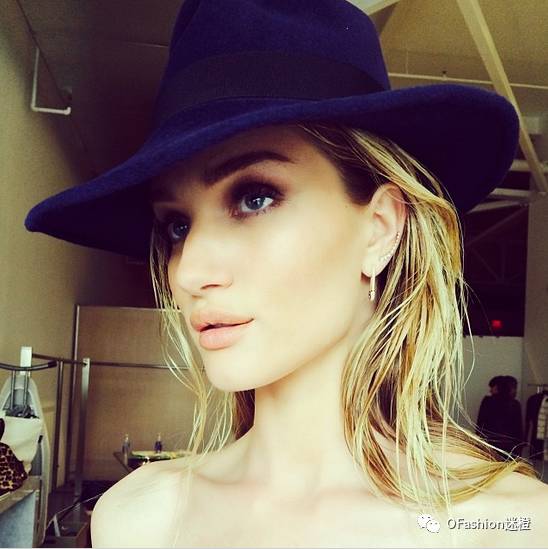 ▲变三女主、超模Rosie Huntington-Whiteley戴了一顶宝蓝色的MM帽子,显得高贵优雅。