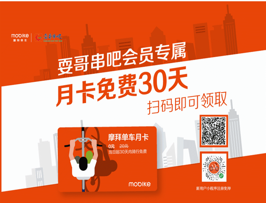 摩拜月卡免费领,30天随便你骑!还有曹操专车,专享6折价!!还在等撒子,坐起车儿拿好福利去3.9折吃到爽!