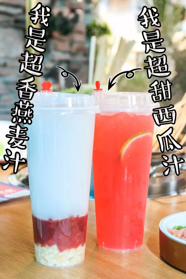 触长那天去点了两份饮料,西瓜汁是纯西瓜鲜榨!超级解火锅的辣味,吃的毛焦火辣的时候一口西瓜汁完美降火。