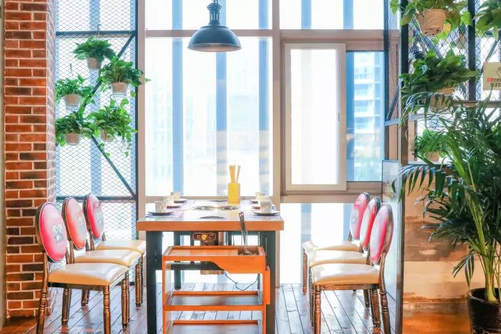 明亮的落地窗,清新的绿植,木质的桌椅,仿佛是误入了一个秘密花园。