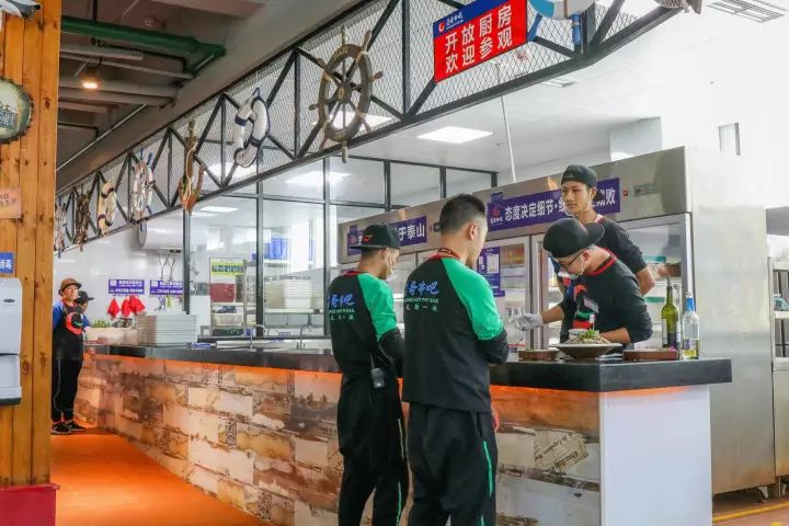 除了美,你还可以看到放心——全开放式的厨房最大程度的保证了食品的卫生干净,大手笔的无水处理系统,厨房干净到可以直接躺下!