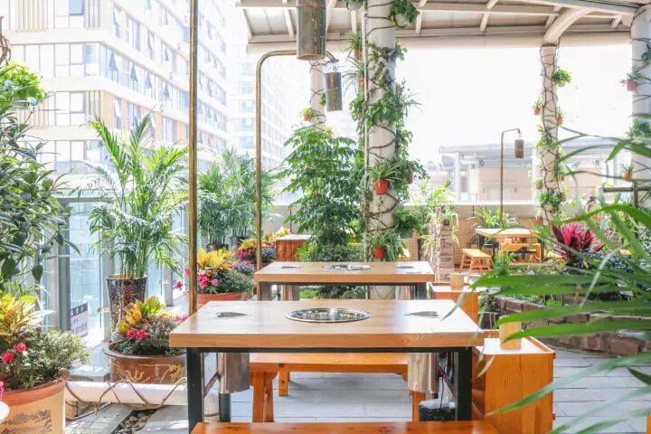 楼顶是露天的花园,在有阳光的冬日撸着串晒着太阳,绝对是撸串的最佳体验。