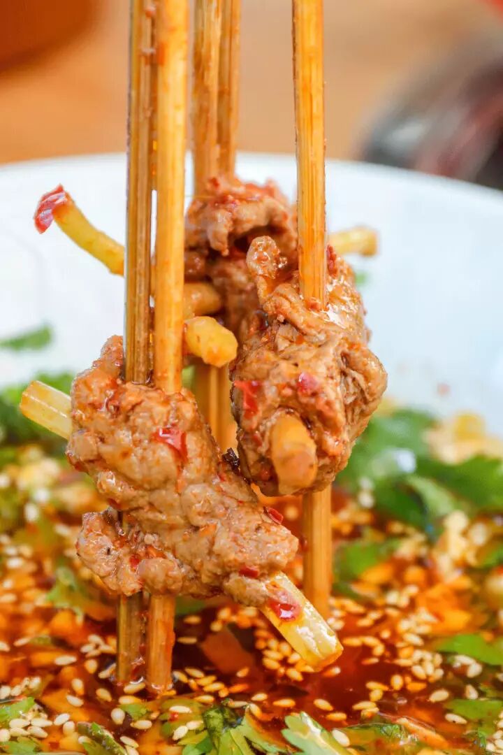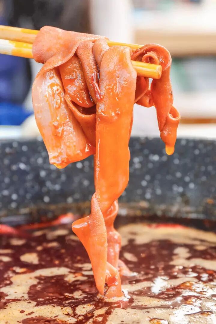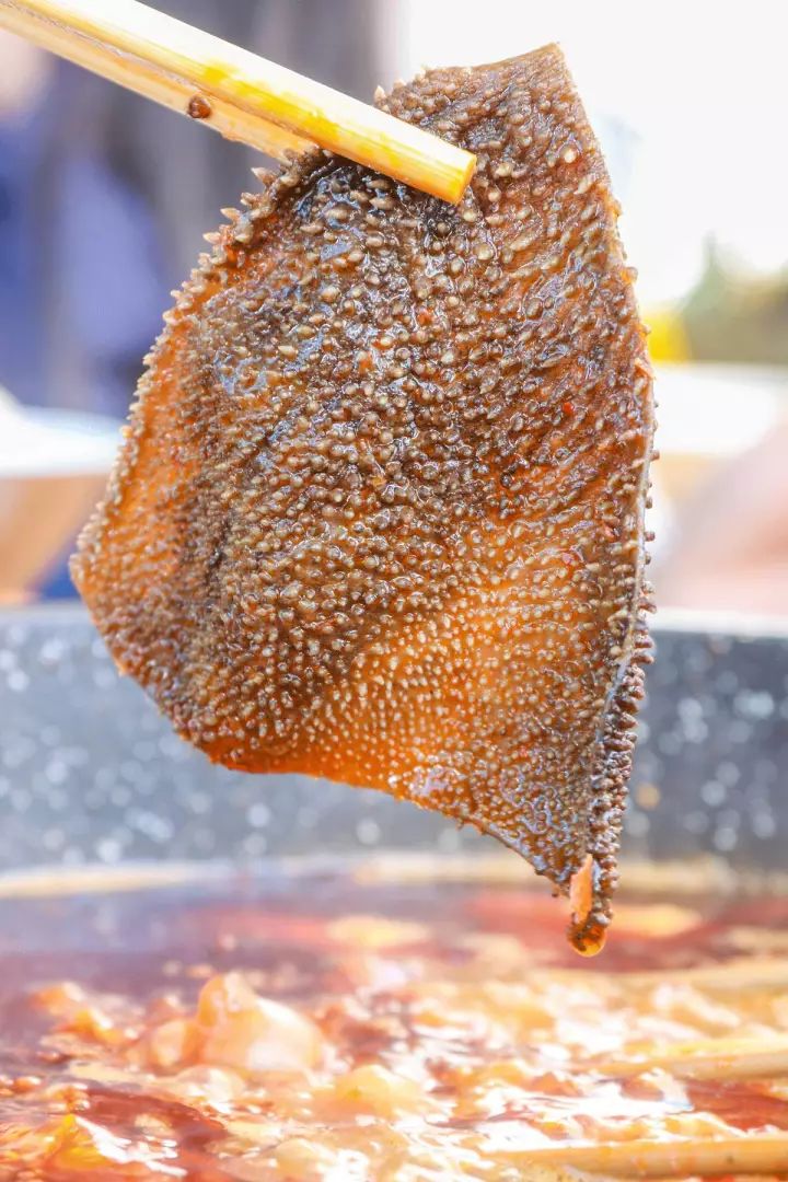 只需要15s的七上八下,就可以入口了。毛肚钉钉勾住牛油的香味,入口脆嫩,表面的颗粒和舌尖摩擦,奇妙而美味。