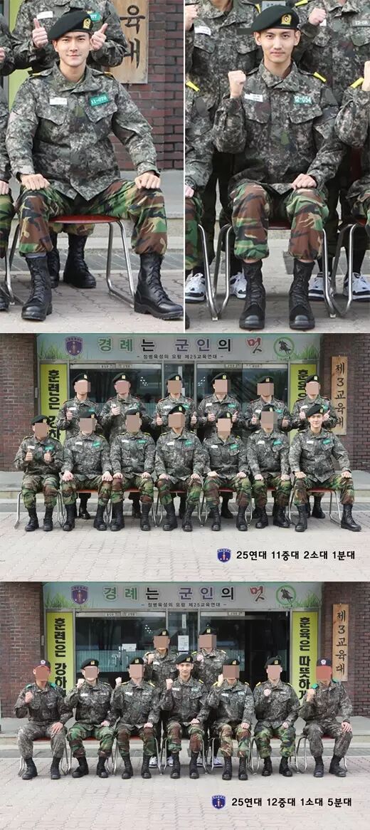 24日早上,昌珉、始源所在的论山训练所官方网站公开了两人所在小分队的照片。照片中,昌珉坐在队伍中间和队员们一同举拳右手,露出微笑眼神坚定。而始源所在的分队相对就显得气氛轻松,全体一致比着大拇指,坐在队伍最左侧的始源也面带会心笑容,感觉和队友们相处得非常之好。