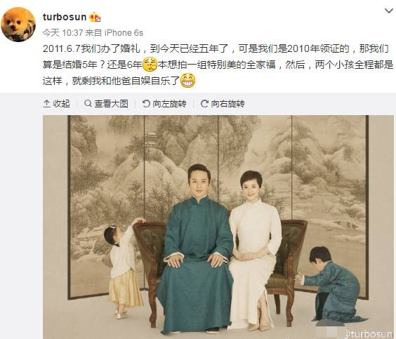 孙俪发文:“2011.6.7我们办了婚礼,到今天已经五年了,可是我们是2010年领证的,那我们算是结婚5年?还是6年?本想拍一组特别美的全家福,然后,两个小孩全程都是这样,就剩我和他爸自娱自乐了。”邓超随后也发出该照片:“媳妇,五年了。”一并送上了“三颗心”。