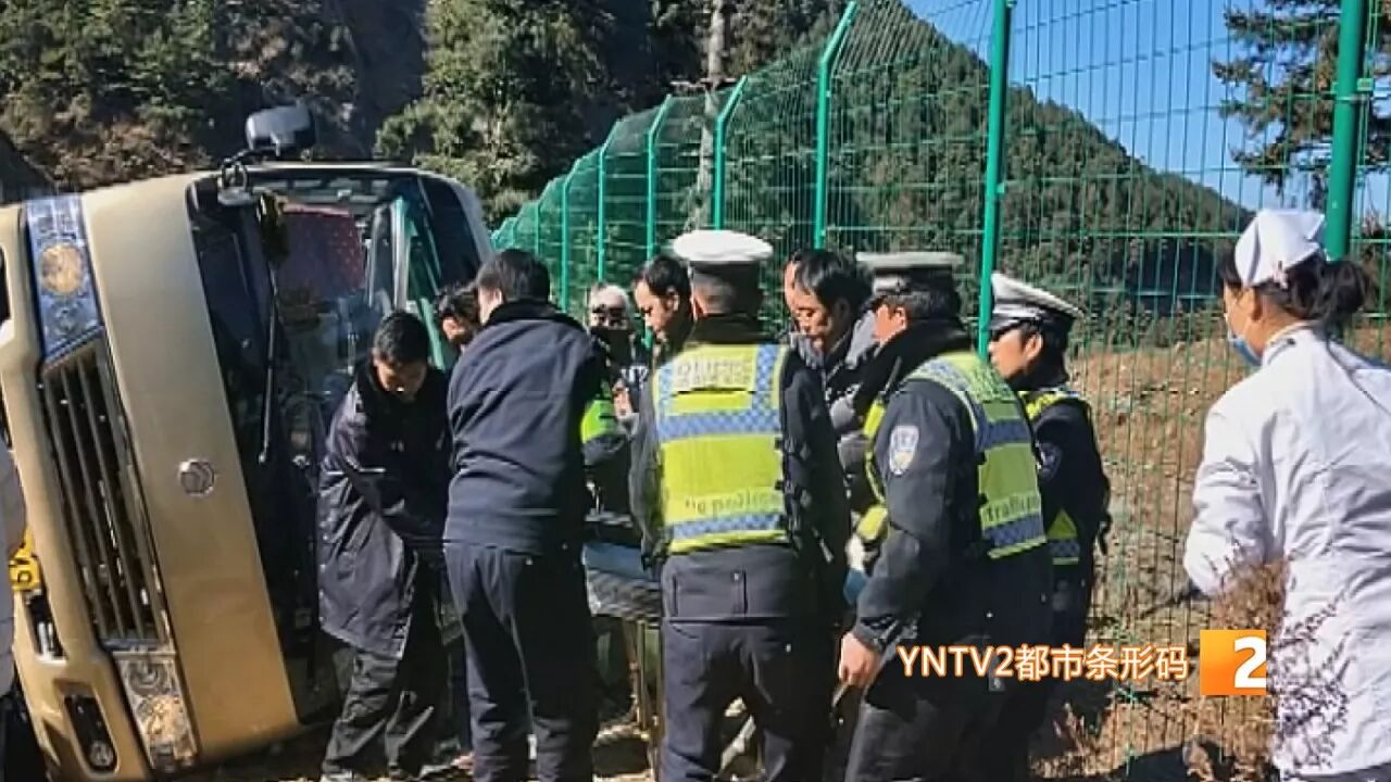 12月22日中午,一台湾旅游团在丽江宁蒗前往泸沽湖的行程中,因道路结冰,车辆发生侧翻,造成车上6名台湾游客、1名领队不同程度受伤。