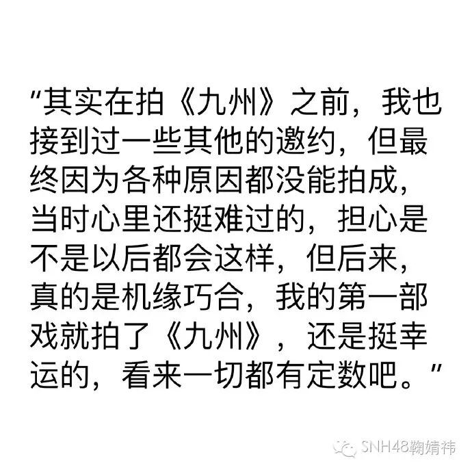 确实,美瞳、深V、毛领让很多人最初对《九州》留下了雷剧的印象。但很快,飞速进展的剧情、不按常理出牌的台词、接二连三的槽点,配合弹幕观看居然出现了减压奇效,引得网友纷纷黑转粉。第一次出演电视剧的鞠婧祎,也借着“雪飞霜”这个角色进入普通观众的视野里。鞠婧祎将她与《九州》的相遇形容成是命运。“其实在拍《九州》之前,我也接到过一些其他的邀约,但最终因为各种原因都没能拍成,当时心里还挺难过的,担心是不是以后都会这样,但后来,真的是机缘巧合,我的第一部戏就拍了《九州》,还是挺幸运的,看来一切都有定数吧。”