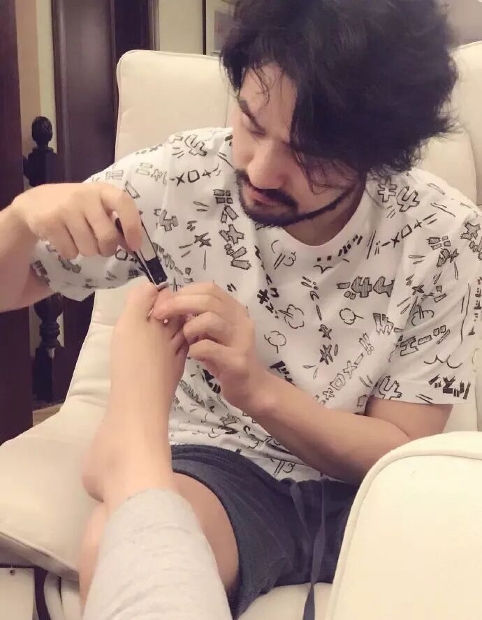 帮怀孕的老婆做饭,帮她剪脚趾甲,很细心一男的。