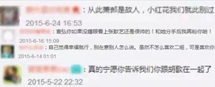 他们的恋情一开始让许多人惊讶。2015年5月20日,袁弘与张歆艺在微博承认恋情,祝福和不看好的人参半。袁弘在朋友圈说:“谢谢大家稀稀拉拉的掌声。”