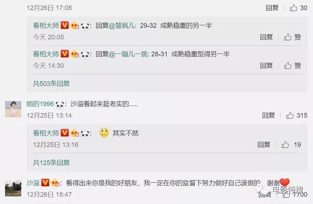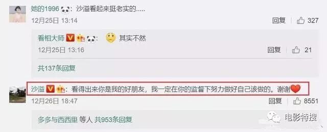 下面有个粉丝评论:“沙溢看起来挺老实的”没有想到博主本人回复:“其实不然”。