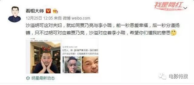 “如同贾乃亮与李小璐,前一秒恩爱幸福,后一秒分道扬镳”这是暗指沙溢将会出轨吗?这个博主并不是娱乐圈内人,微博认证是命理博主。