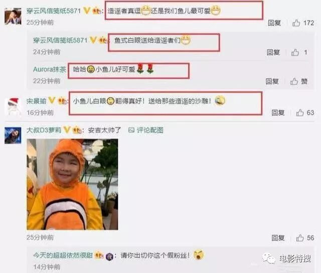 网友们都说:“小鱼儿白眼翻得真好”、“造谣者真逗,还是我们鱼儿最可爱。”