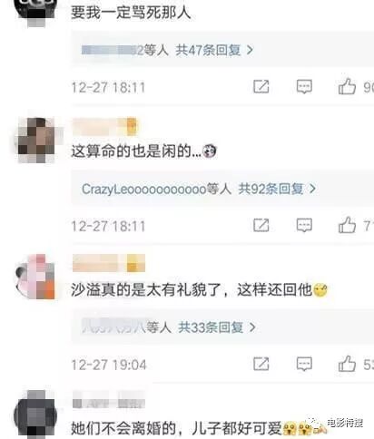 同时也有脾气大的网友评论到“要我一定骂死那人”“沙溢真的太有礼貌,这样还回他”,“他们不会离婚的,儿子都好可爱”。
