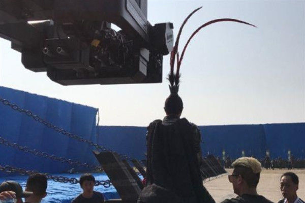 《真三国无双》最早公开的是吕布的背影照,此时应该在拍摄一场即将对打的戏份,对面骑兵汹涌而来。早前就有传闻,古天乐加入《真三国无双》饰演吕布。