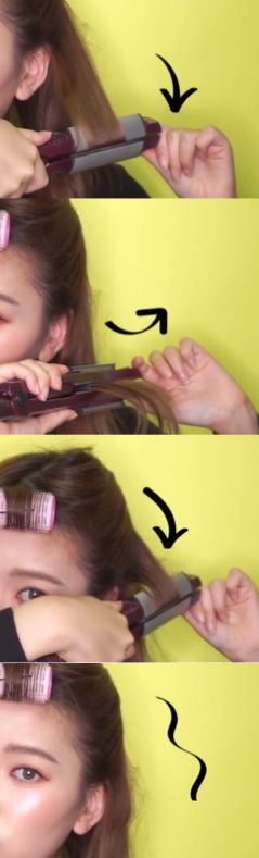 然后挑出一撮头发,用卷发棒一正一反的夹,形成S型的走向。