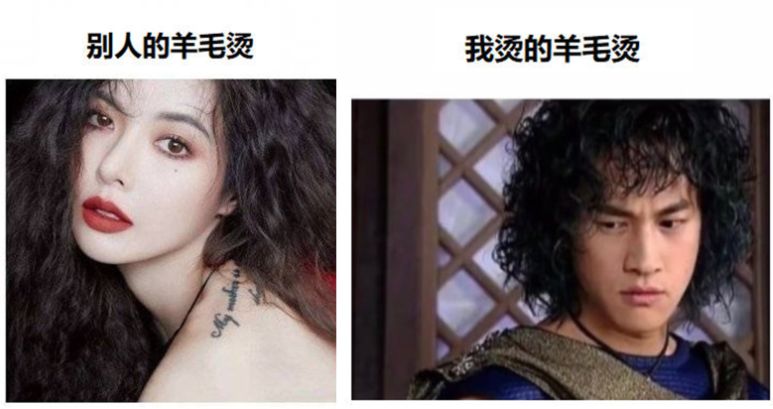 你看到人家的发型很好看,对着发型师说“我要羊毛卷”,然后发型师给你烫了一个:迪克牛仔……