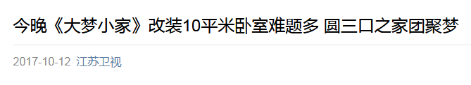 “明星干装修”在很多人看来“闻所未闻见所未见”,但江苏卫视全新星素互动极速改装真人秀《大梦小家》却让大家看到了明星的另一面,在今晚的节目中,由胡海泉带队的“梦想行动队”接到新的委托来到了南京,为蜗居在10平米小房间的一家三口改善他们的居住环境。