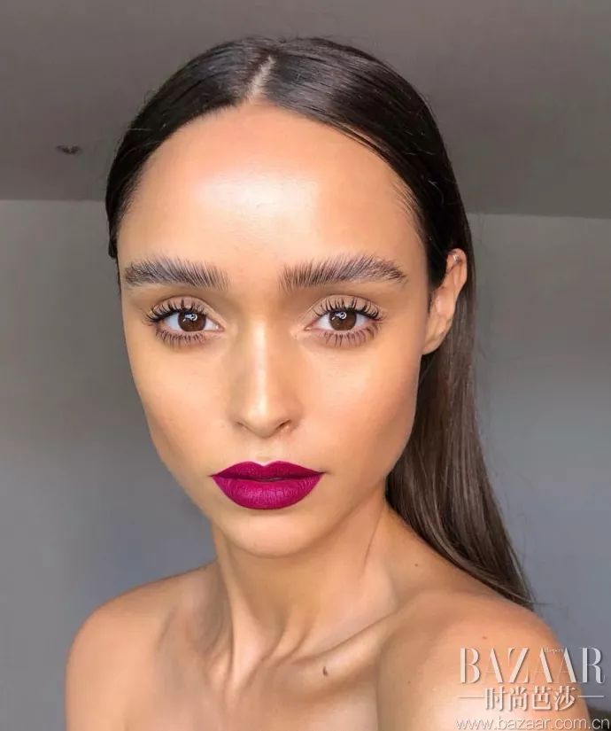 显“秃”的原因就是发际线太靠后,所以要让发际线前移,发际线粉要贴着前额的头发边缘来化,切忌一贪心化太多,重点化在发根的位置,再轻轻往前晕染。